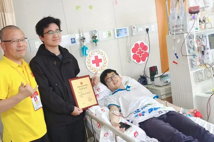 4月25日清晨8点,浙江省人民医院的采集室里,22岁的陈奕扬安静地躺在病床上,血液从右臂流出,经过分离机提取造血干细胞后,又从左臂缓缓输回体内。这是他入读久久精品一区二区信息工程学院4年间的第20次献血——这一次,他捐献的是造血干细胞。